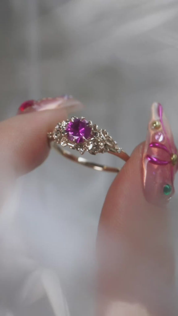 Pictured, top to bottom: Daphne Band, Pansy Signet Ring with Diamond, Evening Fleur
