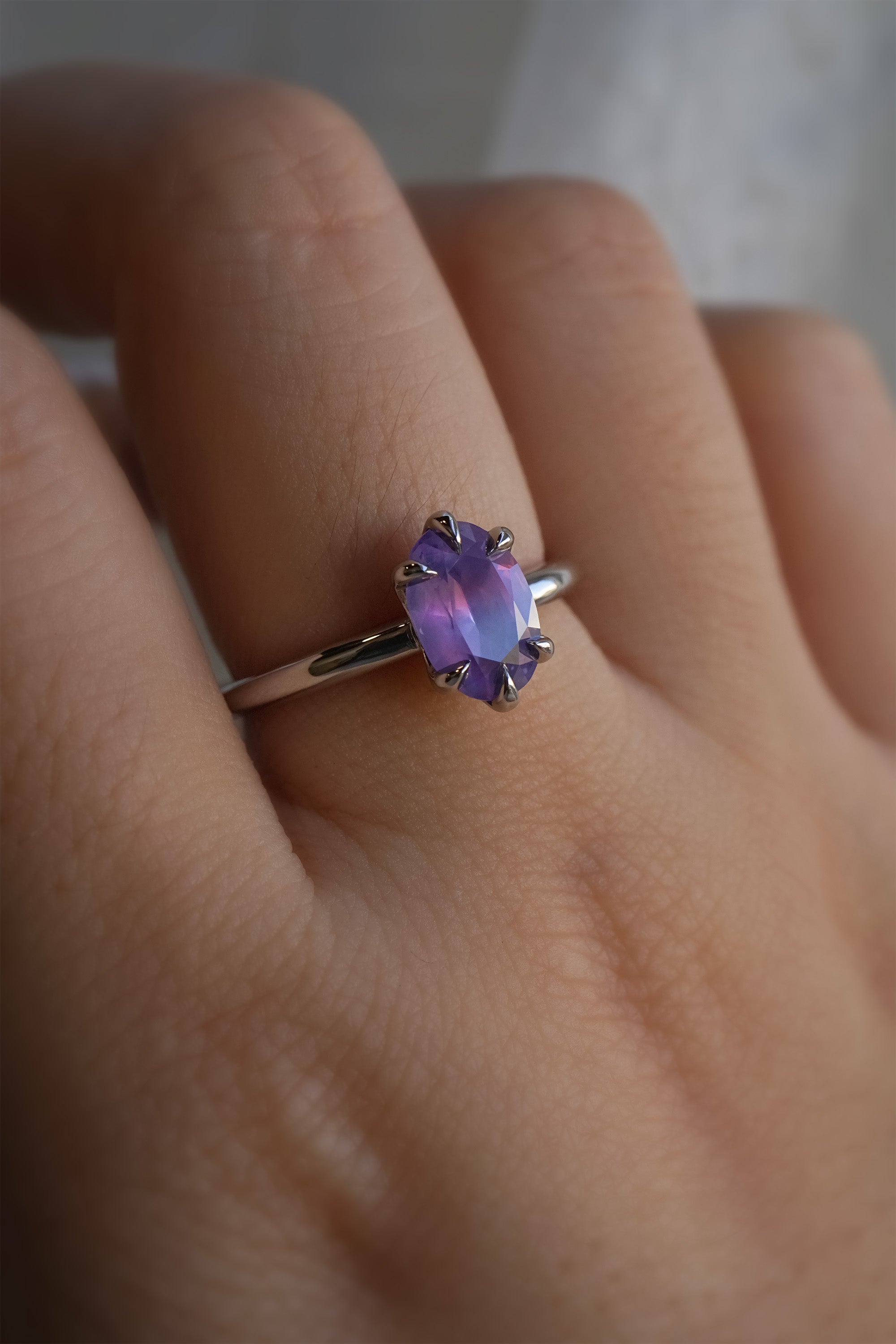 Opalescent Purple Sapphire Solitaire Ring