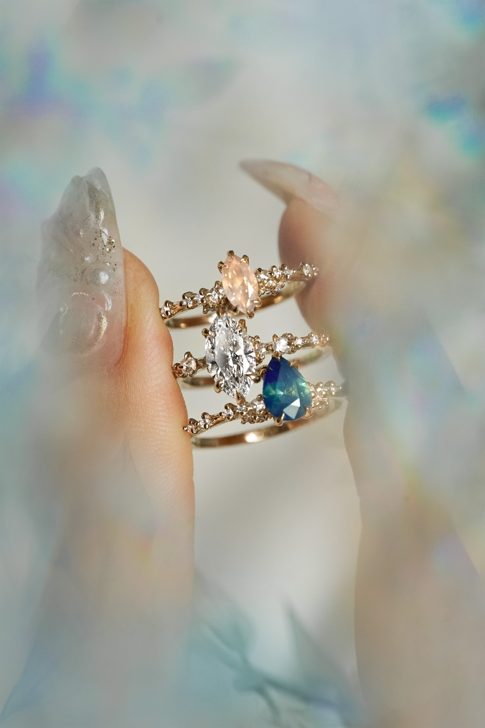 One of a kind pieces cannot be restocked. For a similar piece or for alternative stones, please submit a bespoke request, shop our available gemstones, or shop lab grown options. This style works beautifully with all kinds of centre stone shapes, sizes and colours.