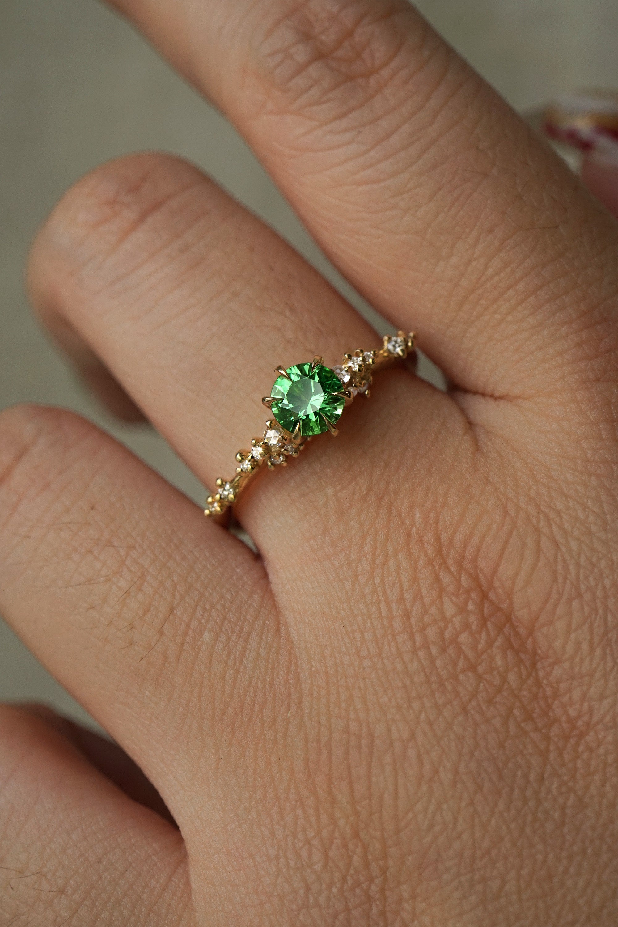 Vibrant Green Tsavorite Garnet Daphne Ring