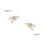 Petite fairy fleurs bursting with delicate glimmers of light from marquise petals and rose cut buds. Both studs can be worn on either ear any way you like.