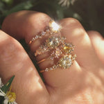 This is a modified version of our White Wisp ring with all round brilliant cut diamonds, and an additional four 1mm and two 0.9mm diamonds under the centre stone.