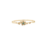 A lush teal sapphire held within the most delicate hand-carved buttercup petals. Glittering as the wind blows, and leaving a trail of gilt petals orbiting your finger. A fleur of pure whimsy, magical alone or mingling serendipitously in your stack.