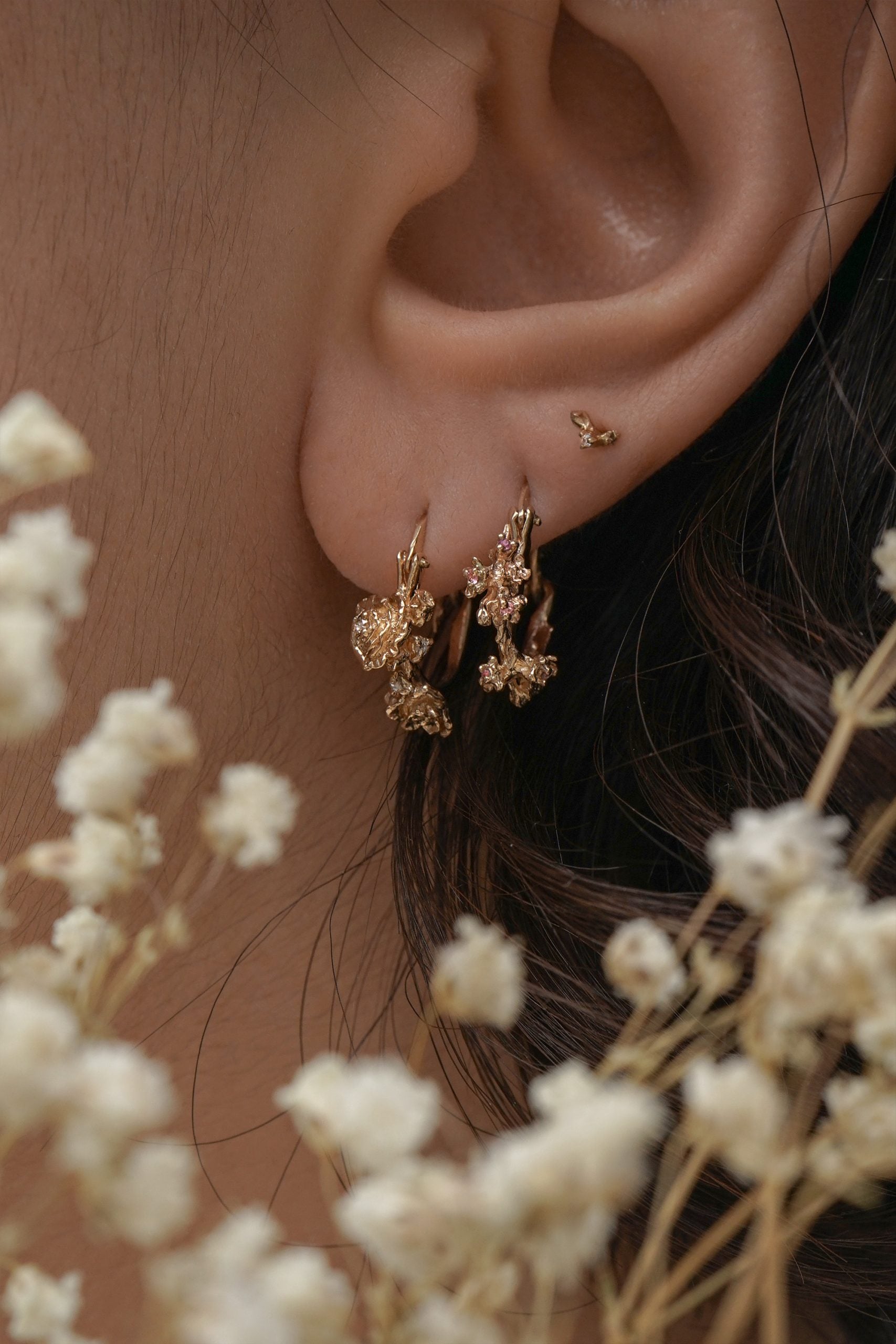 We cannot accommodate requests for specific arrangements. Your bouquet will be custom arranged based on the flowers you select before being cast in glowing gold. We may reorient the pieces, deconstruct, or slightly reshape them to achieve a balanced and one-of-a-kind arrangement. This means that no two rings will look the exact same. It’s best to allow yourself to be surprised and entrust the design to us!