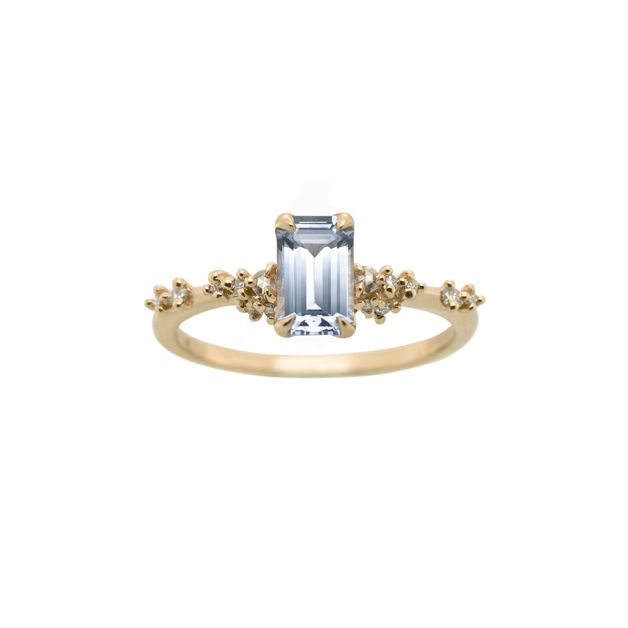 Wrapping around your finger with ethereal, airy, glistening dewdrops. The Emerald Cut Sapphire Daphne features an emerald cut sapphire centre, with the finest claws and bubbling recycled diamonds.