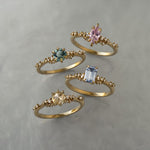 Wrapping around your finger with ethereal, airy, glistening dewdrops. The Rose Cut Sapphire Daphne features a round rose cut sapphire centre, with the finest claws and bubbling recycled diamonds.
